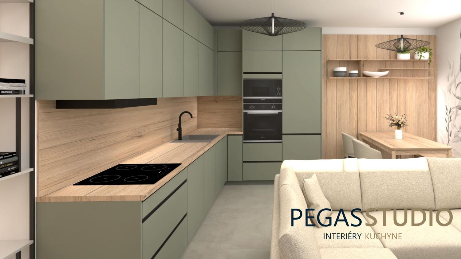 Interiér navrhnutý pre klientku, ktorá túžila po útulnom a harmonickom domove s dôrazom na funkčnosť a praktické úložné riešenia. Celý priestor spája jemná kombinácia prírodného dreva, tlmených zelených odtieňov a svetlých neutrálnych tónov, ktoré spolu vytvárajú pokojnú a príjemnú atmosféru.
