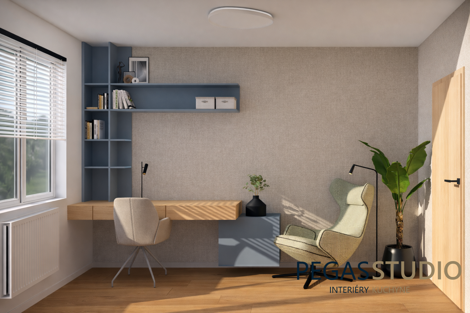 má pracovný kút s prirodzeným svetlom, rozkladaciu sedaciu súpravu aj úložné priestory
